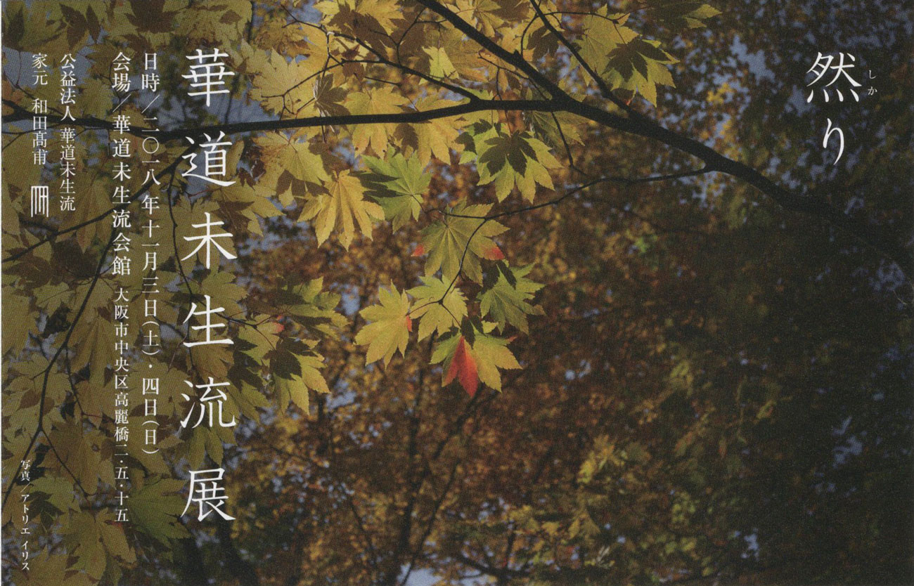 2019年11月3日(日)4日(祝)10am~5pm 会場/華道未生流会館 大阪市中央区高麗橋2-5-15 入場無料 薄茶お菓子/茶席にて無料